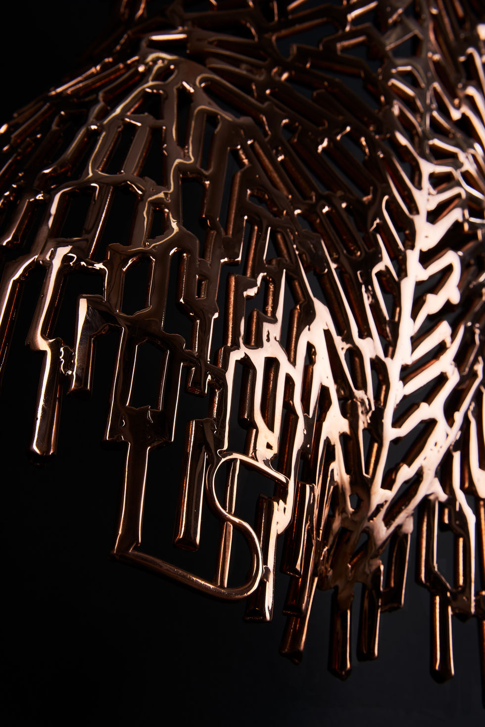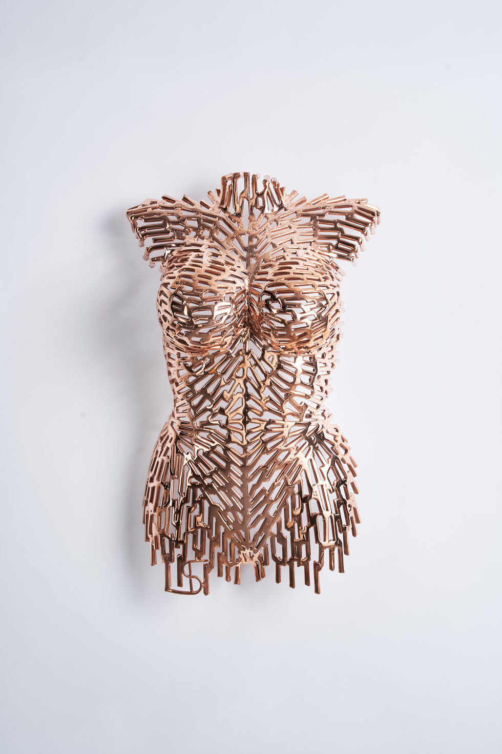 het werk van Bart Smeets is waar kunst en ambacht samenkomen. Deze metalen torso's showen niet alleen de fysieke vorm, maar ook de emotie en complexiteit van structuur. Elk detail, van de strakke lijnen tot de subtiele glans, is en ode aan vakmanschap en creativiteit.